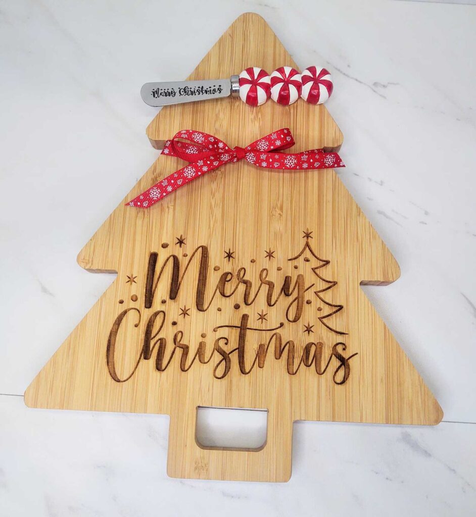 The Merry Christmas Tree Engraved Wood Serving Board is a festive and rustic holiday piece, perfect for serving snacks or displaying as charming seasonal décor.