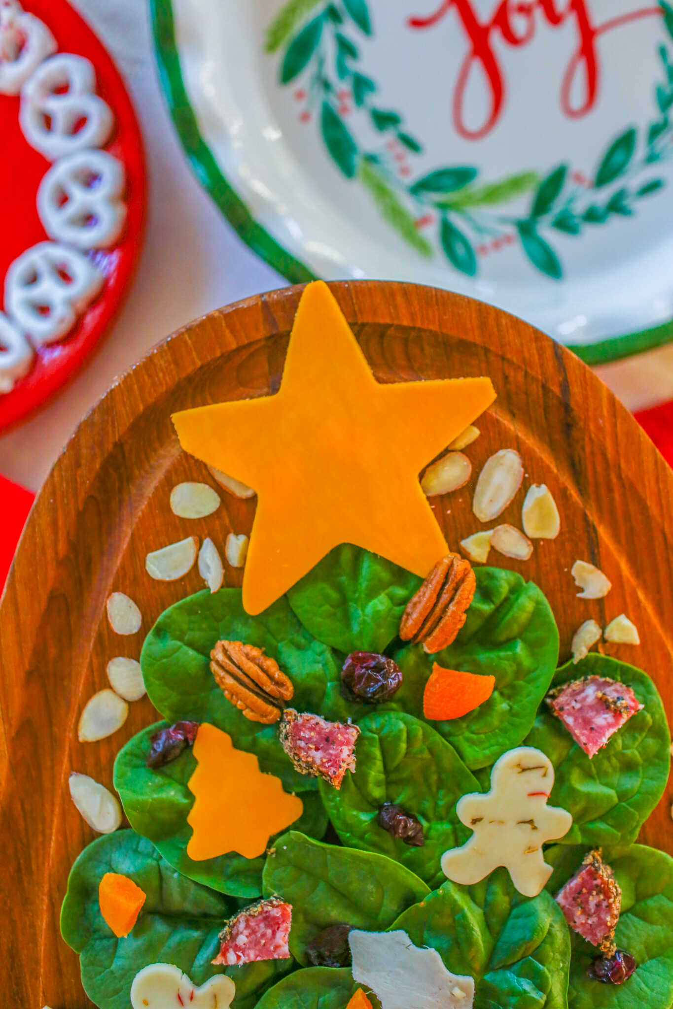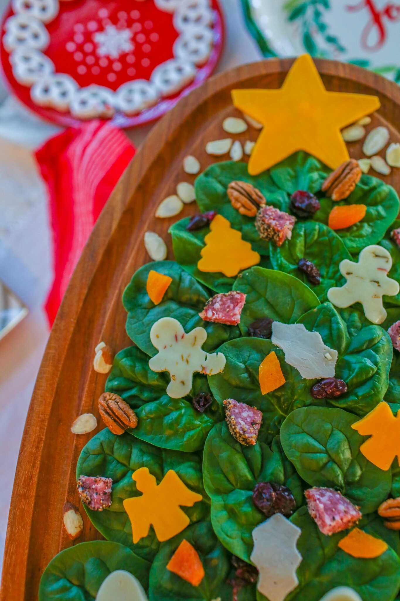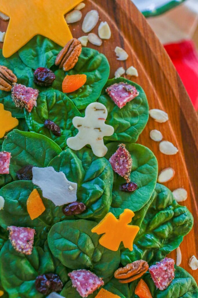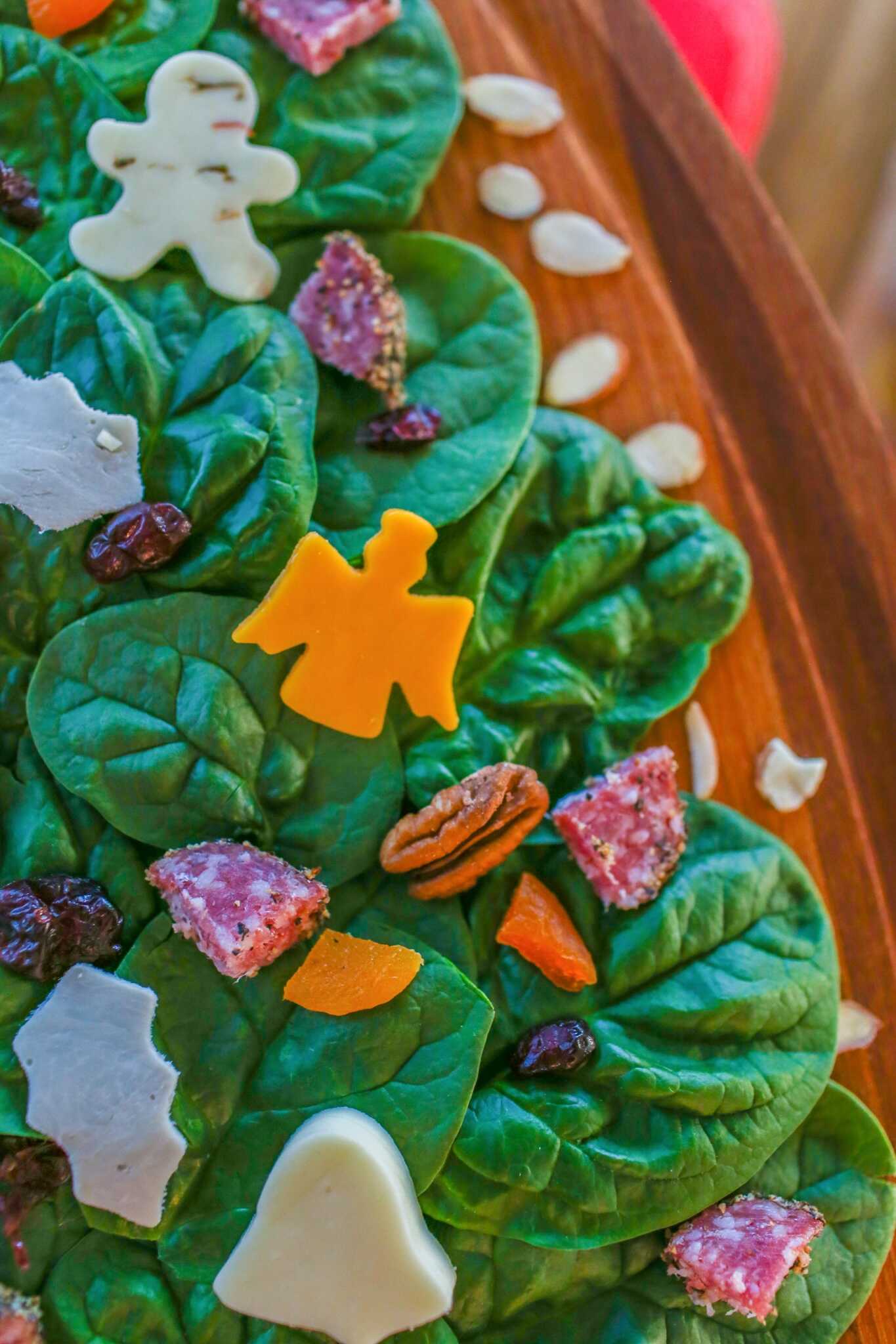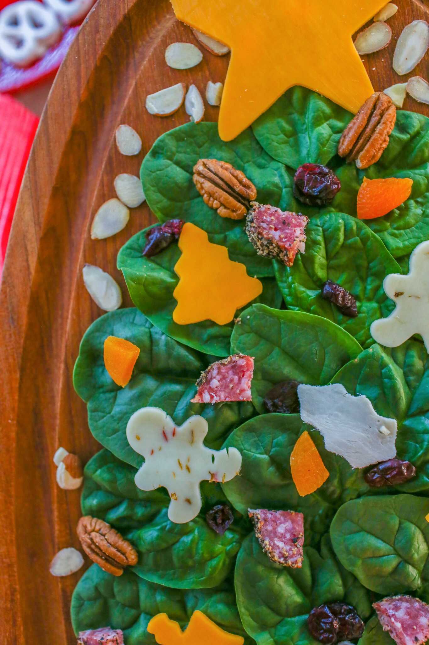 - Make ahead – You can prep the cheese cutouts and salami pieces a day ahead. Assemble the tree right before serving so the spinach stays fresh.
