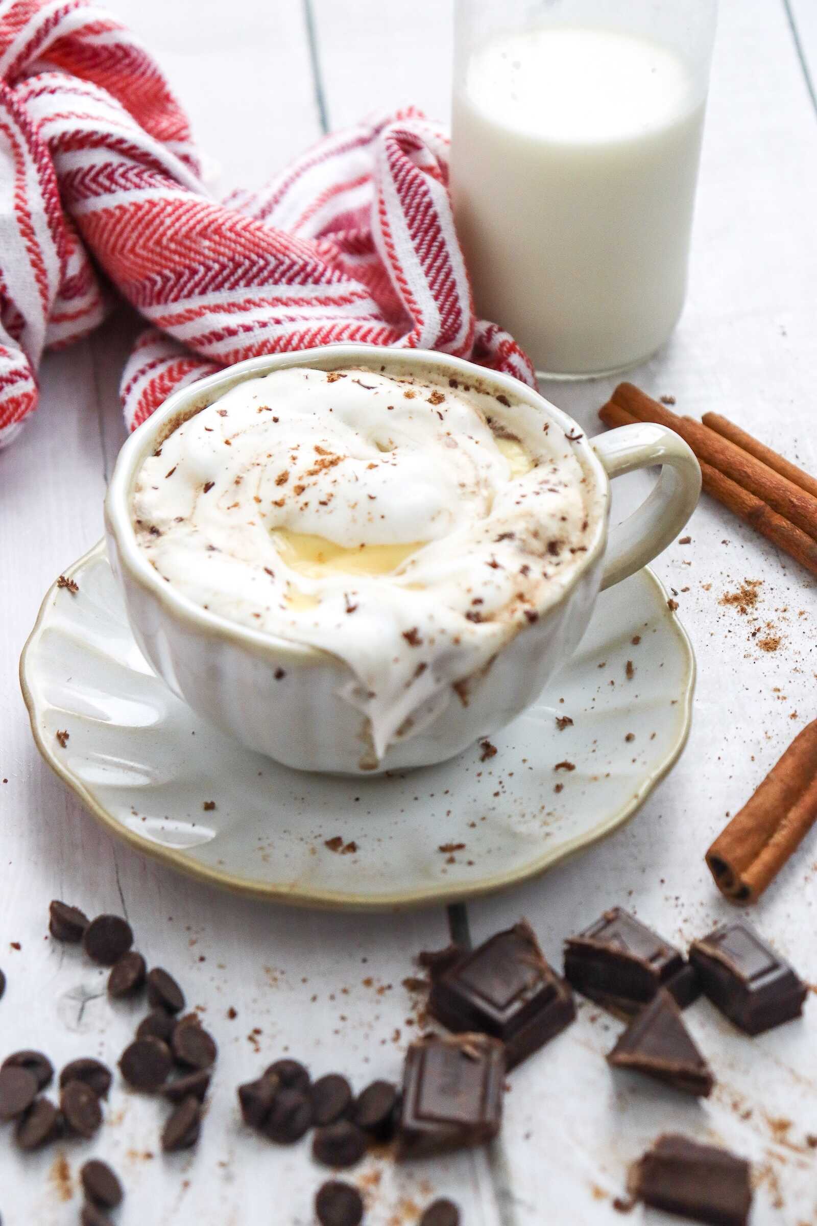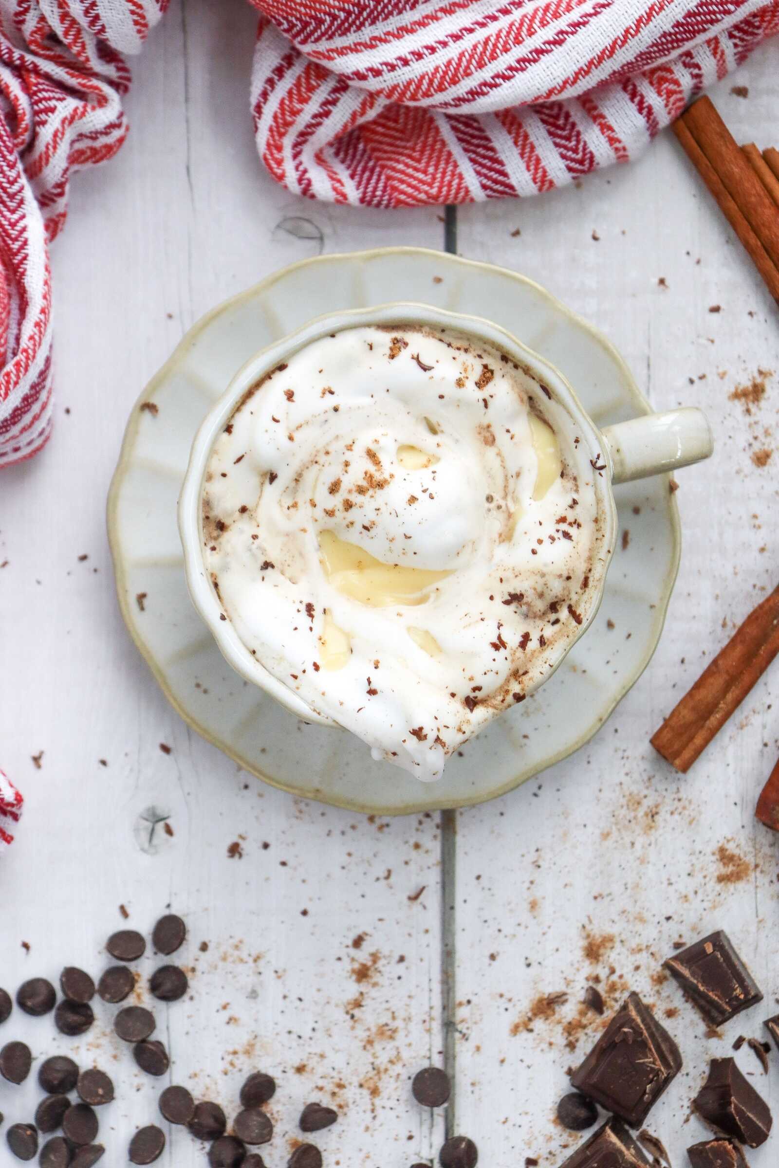 All you need is milk, eggnog, chocolate chips, vanilla, and warm spices. These everyday ingredients create layers of flavor that taste gourmet.