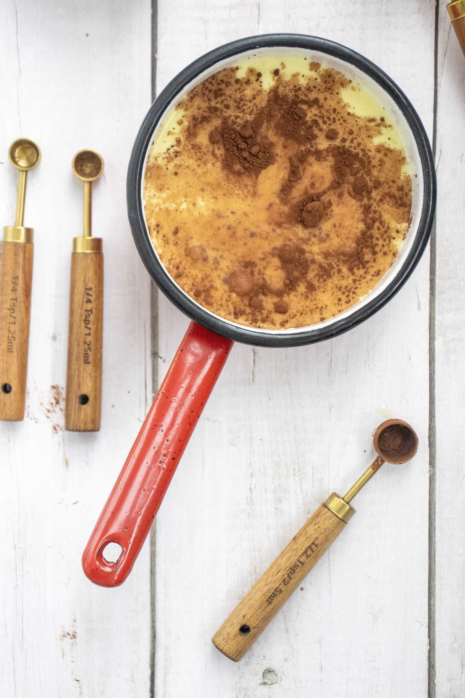 A whisk helps blend the cocoa powder and melts the chocolate evenly without clumping.