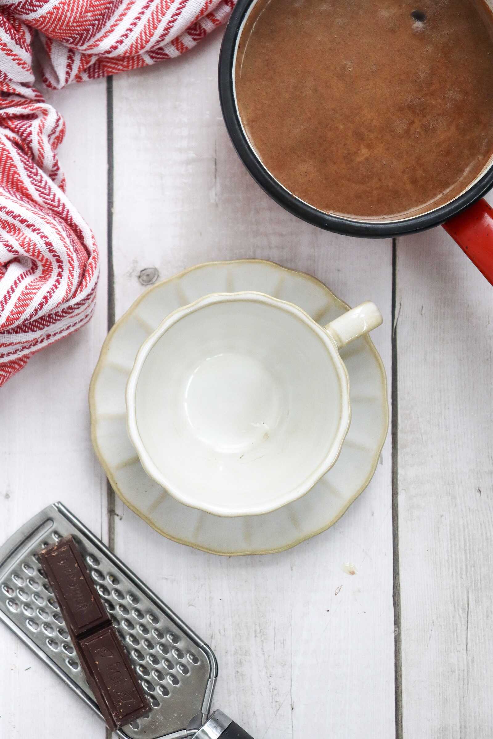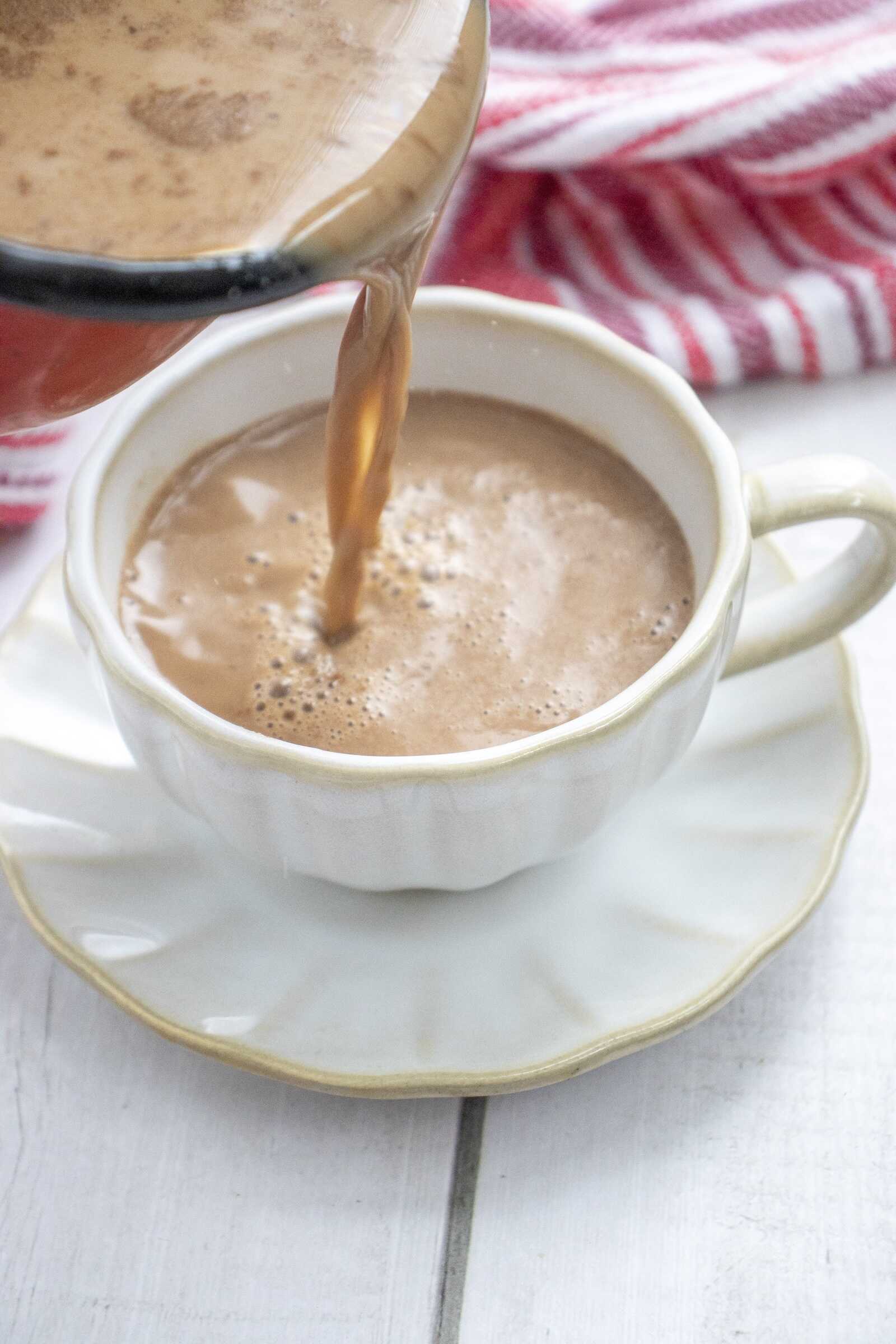 Chocolate chips melt into the warm milk mixture, creating velvety richness and satisfying chocolate depth—perfect for winter.