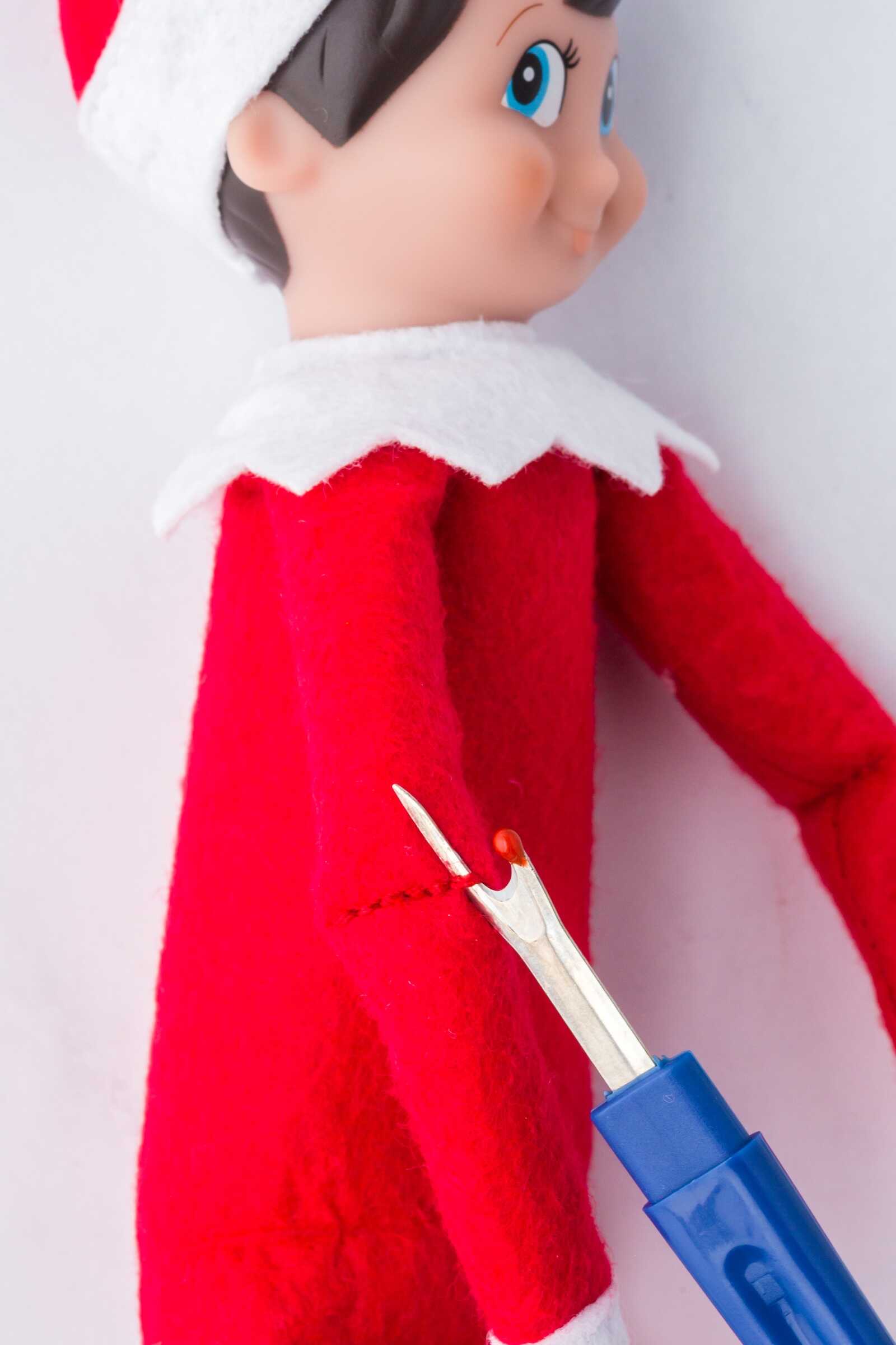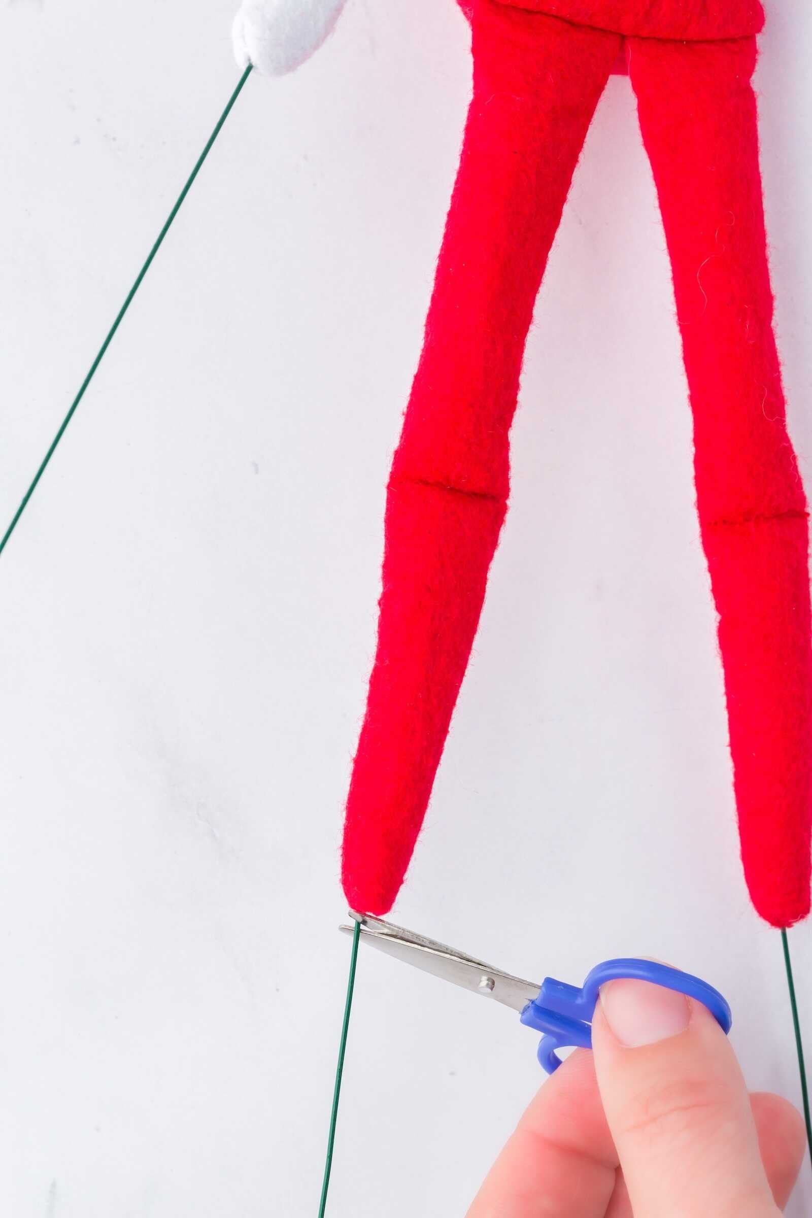 Sometimes your elf falls over or won’t stay in place because the original design has no structure inside the arms or legs. The floral wire solves that instantly.