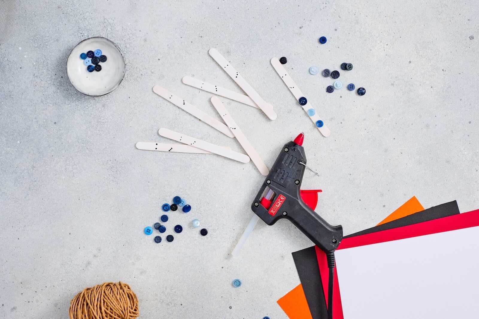 Most of the supplies are items you likely already have at home — craft sticks, markers, buttons, and scrap paper. Even if you need to buy supplies, everything can be found at the dollar store or any craft store for just a few dollars.